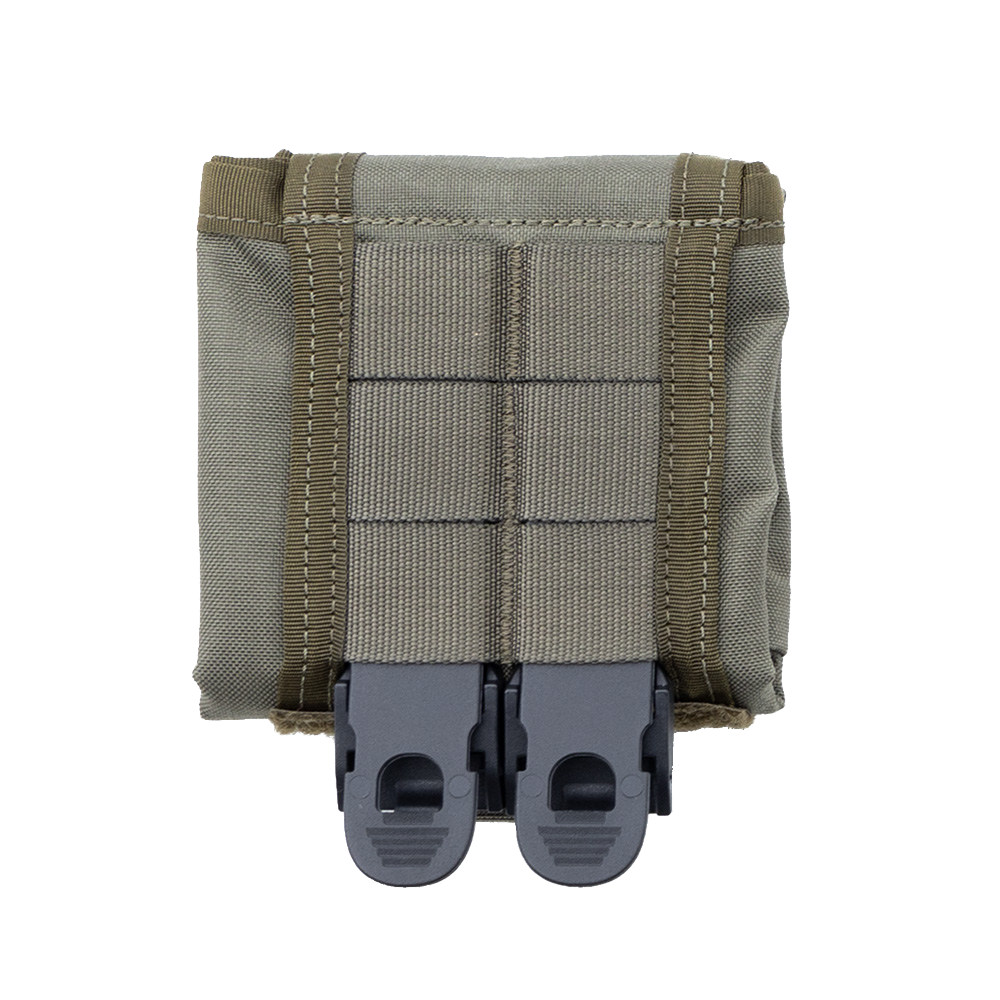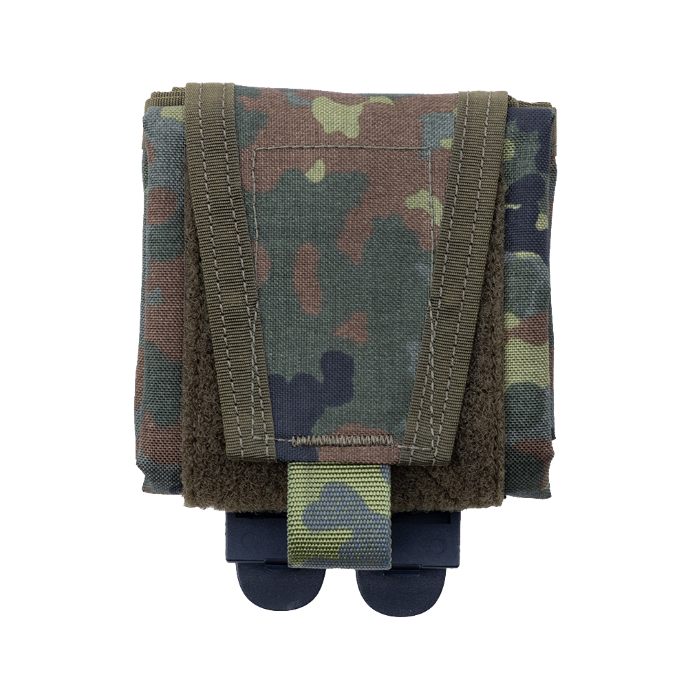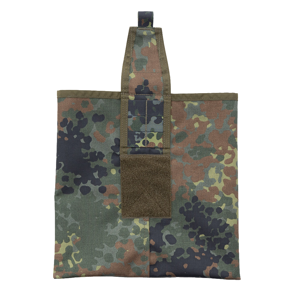 Die Dump Pouch groß hat eine Grundfläche von 30 cm x 30 cm und ist so äußerst geräumig. Die Montage erfolgt über zwei MOLLE-Clips, alternativ kann die Tasche auch einfach auf einen Gürtel aufgeschlauft werden. Wird die Tasche nicht benutzt, kann diese klein zusammen gefaltet werden.
