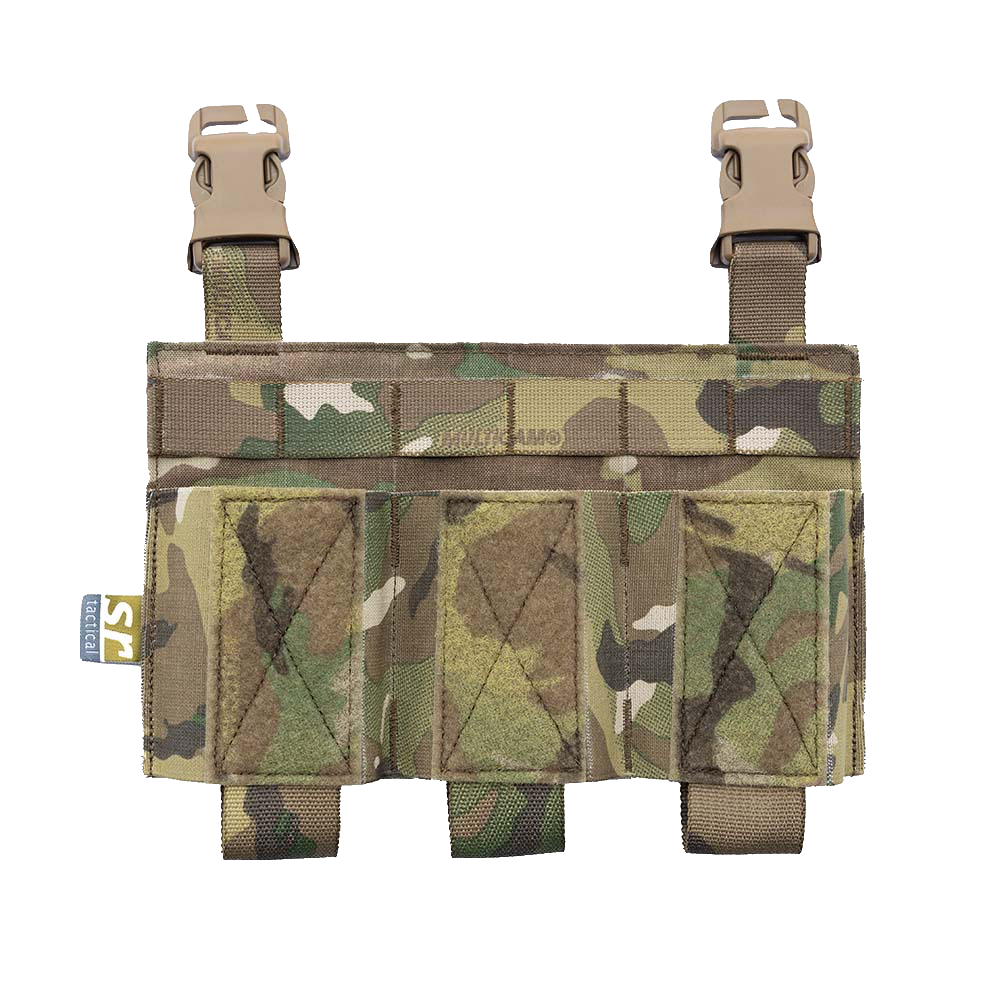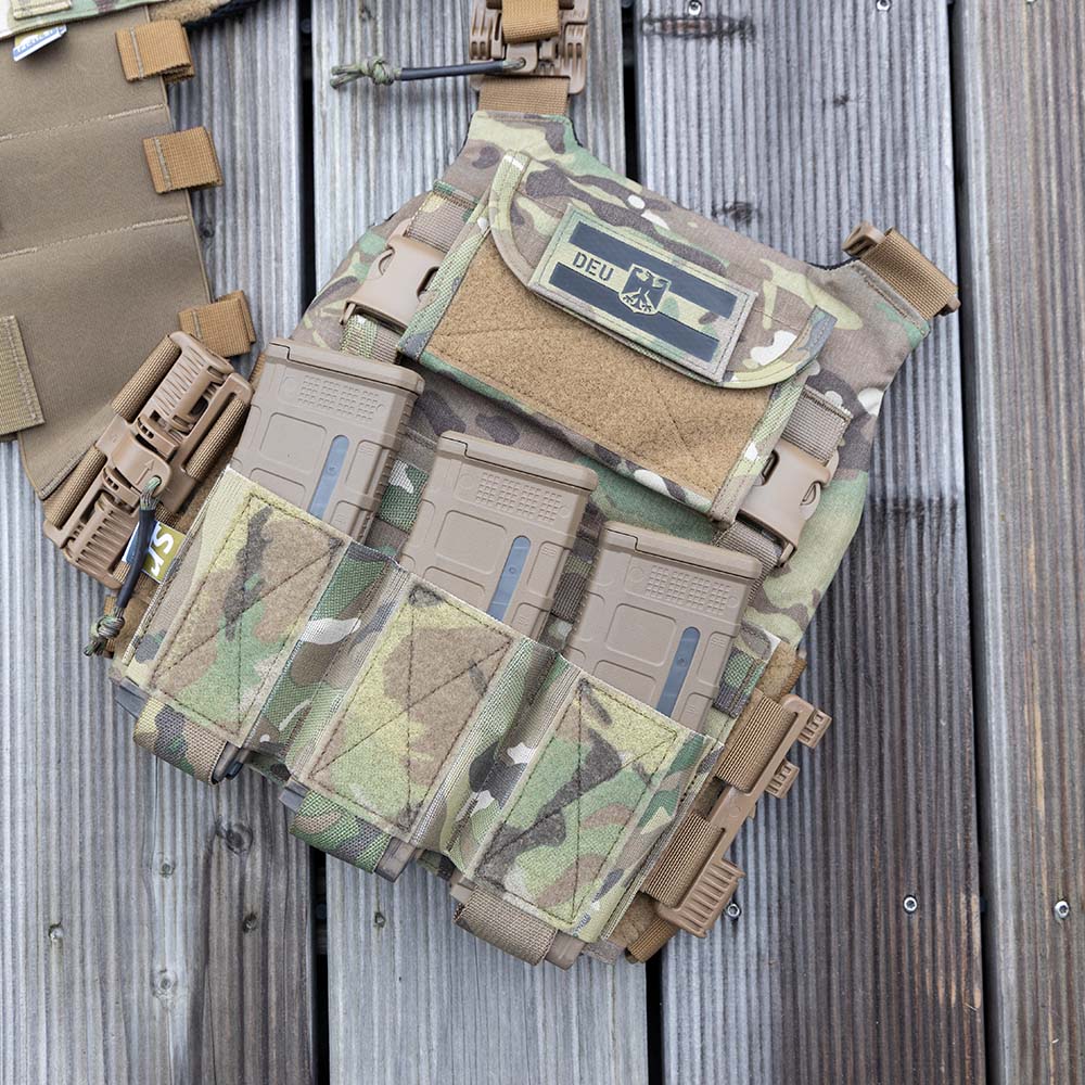 Das AR15 Magazinpanel 2.0 nimmt drei AR15 Magazine mit 30 Schuss Kapazität auf und kann vorne auf den Slick-Plattenträger montiert werden.