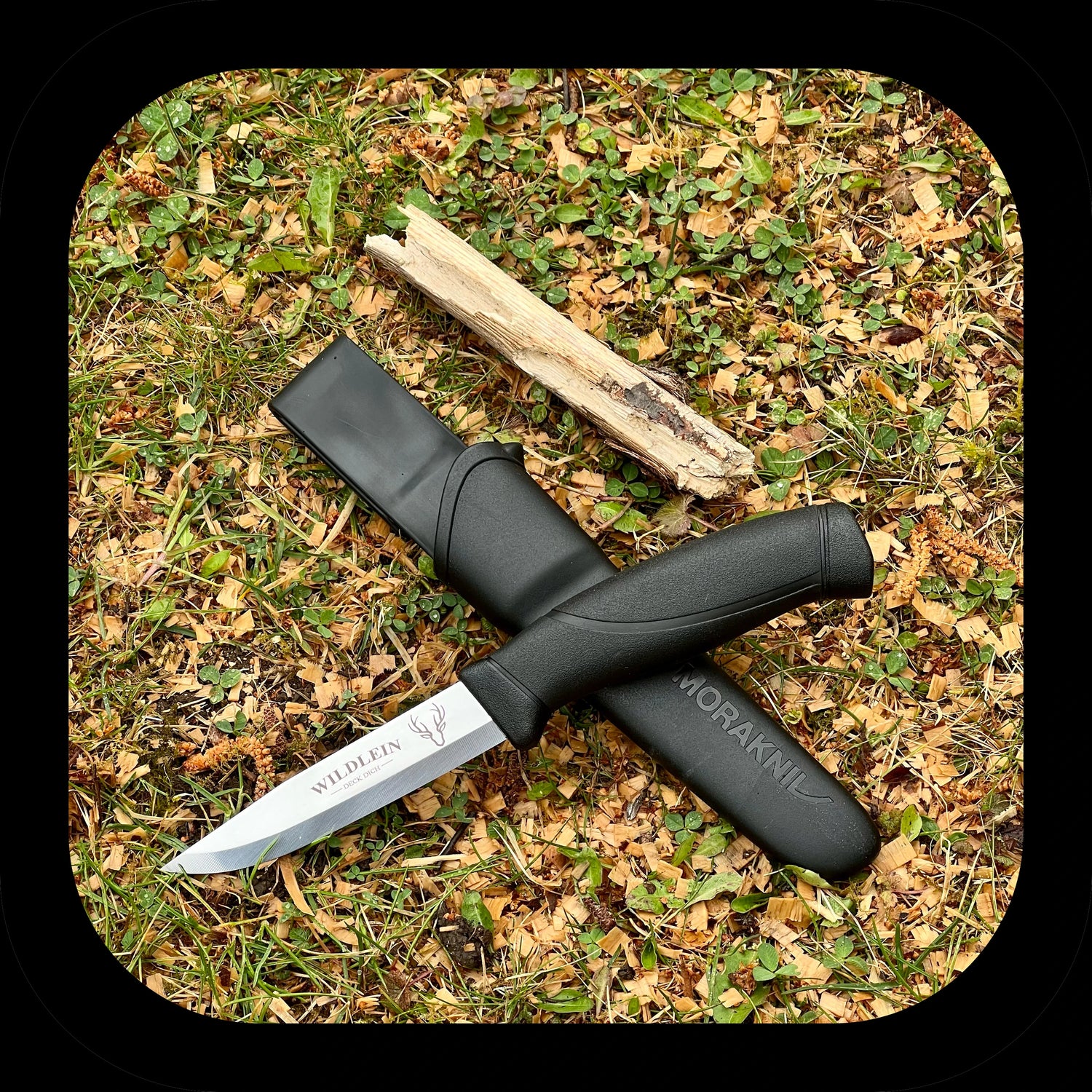 Das Messer lässt sich gut bei Bushcraft- und Survivalaktivitäten einsetzen. Die Schneide ist mit einem Scandi-Schliff versehen und lässt sich gut nachschleifen.